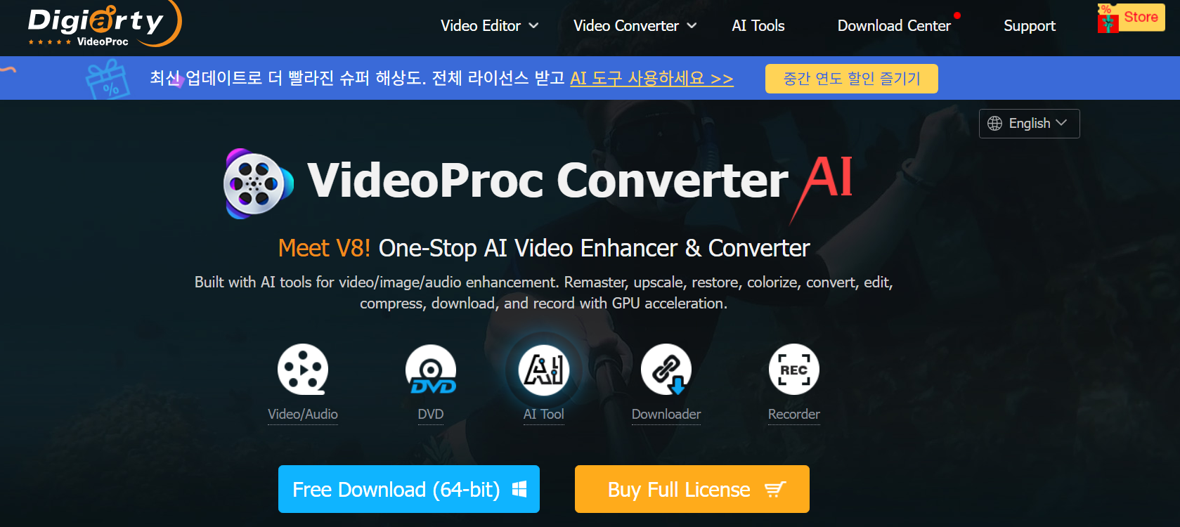 7. ✅ VideoProc Converter AI – 영상 편집도 함께 가능